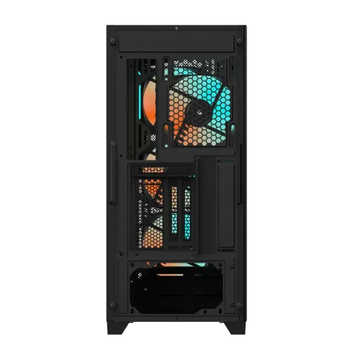 The GIGABYTE C301 GLASS is a mid-tower E-ATX gaming case that boasts an optimized airflow design with a large mesh front and vented top panel, ensuring efficient cooling while maintaining a visually appealing aesthetic. The case supports motherboards up to E-ATX size and is compatible with up to 360mm liquid cooling systems, allowing for high-performance cooling solutions. GIGABYTE C301 GLASS Gaming Case supports vertical GPU installation, showcasing your graphics card in a unique way. The full-size tempered glass side panel provides a sleek and modern look, while the built-in ARGB connector hub offers customizable lighting effects with 16.7 million color options. The GIGABYTE C301 GLASS Gaming Case also features a PSU shroud design for a clean look, detachable dust filters for easy maintenance, and a convenient I/O panel with USB 3.1 Type-C and USB 3.0 ports. GIGABYTE C301 GLASS is a versatile and stylish gaming case that combines functionality with eye-catching design elements.