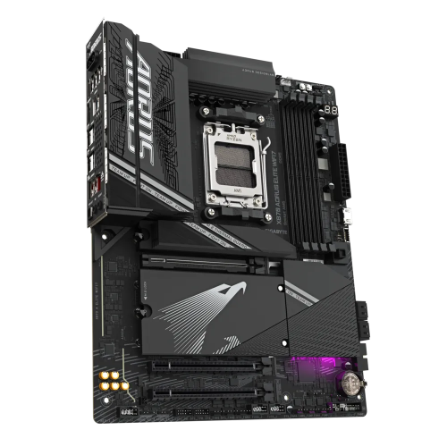 The GIGABYTE X870 AORUS ELITE WIFI7 DDR5 AMD AM5 ATX Motherboard is a high-performance motherboard designed to support AMD Ryzen 9000, 8000, and 7000 Series processors, leveraging the power of the AMD Socket AM5 and advanced DDR5 memory technology. With four DIMM slots supporting dual-channel DDR5 memory and AMD EXPO Memory Module Support, it offers overclocking capabilities up to 8600MT/s, ensuring top-tier performance and compatibility. The motherboard features a robust digital twin 16+2+2 phases VRM solution, providing consistent and high-powered performance, ideal for overclocking and demanding applications. Efficient cooling solutions, such as the DDR Wind Blade for active cooling of memory modules and VRM Thermal Armor Advanced with I/O ZONE, keep your system cool under pressure. It also offers ultra-fast storage options with four M.2 slots, including three PCIe 5.0 x4 slots, for quick data access and transfer. Enhanced connectivity features such as 2.5GbE LAN, Wi-Fi 7, dual USB4 Type-C with DP-Alt, and HDMI provide versatile and high-speed networking options. The user-friendly design includes M.2 EZ-Match magnetic alignment, EZ-Latch Plus for PCIe and M.2 slots, and a friendly UI with multi-theme support, making installation and management a breeze. Additionally, the motherboard delivers superior audio quality with Realtek ALC1220 HD Audio and WIMA audiophile-grade capacitors, ensuring an immersive audio experience. Overall, the GIGABYTE X870 AORUS ELITE WIFI7 DDR5 AMD AM5 ATX Motherboard is the ultimate choice for those seeking to unleash the full potential of their system with advanced memory support, robust power delivery, efficient cooling solutions, and extensive connectivity options