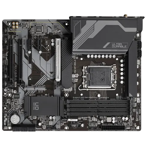 The GIGABYTE Z790 UD AX ATX Motherboard comes with Intel Socket LGA 1700 that supports 13th and 12th Gen Series Processors. It delivers unparalleled performance with twin 16+1+1 Phases Digital VRM Solution. The motherboard comes with 4x SMD DIMMs with XMP 3.0 Memory Module Support. The sockets support up to 128 GB (32 GB single DIMM capacity) of system memory. The motherboard is equipped with 3x PCIe 4.0 x4 M.2 Connectors. It supports new PCIe 5.0 SSD with up to type 25110 M.2 slot designed to provide high power M.2 PCIe 5.0 SSD solutions. It has PCIe 5.0 x16 Slot with Quick Release & Screwless Design. The GIGABYTE Z790 UD AX is equipped with 2.5GbE LAN & Wi-Fi 6E 802.11ax.2.5G LAN provides up to 2.5 GbE network connectivity, with at least 2 times faster transfer speeds compared to general 1GbE networking, perfectly designed for gamers with ultimate online gaming experience. The latest Wireless solution 802.11ax Wi-Fi 6E with a new dedicated 6GHz band enables gigabit wireless performance, provides smooth video streaming, a better gaming experience, few dropped connections, and speeds up to 2.4Gbps. Moreover, Bluetooth 5 provides a 4X range over BT 4.2 and faster transmission. The advanced cooling solution also provides the perfect aesthetic heatsink design to keep your PC at an optimal temperature, preventing you from unexpected system crashes during the creative process. The GIGABYTE Z790 UD AX ATX Motherboard comes with 3 years of warranty.
