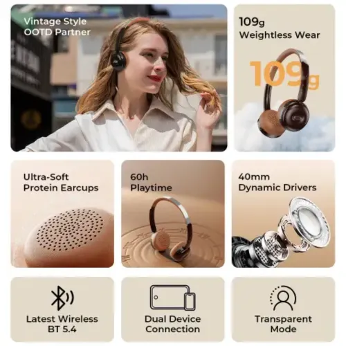 The Havit H616BT Wireless Bluetooth Headphone combines modern wireless technology with a fashionable throwback style, providing high-quality sound and great comfort for extended periods of use. With a lightweight design and a translucent mode feature, it provides both convenience and safety, letting you to listen to music while remaining aware of your surroundings. Powered by the powerful JL7006F8 processor and Bluetooth wireless version 5.4, the Havit H616BT Bluetooth Headphone provides a stable and efficient connection with low latency for seamless music streaming. This headphone has a 400mAh battery and can last up to 60 hours at 60% volume, making it ideal for long listening sessions that do not require regular recharging. The device's quick charging functionality via a Type-C USB connector allows it to recharge completely in just two hours, ensuring you are always ready to go. The Havit H616BT Wireless Bluetooth Headphone, which features a 40mm twin speaker driver unit, produces rich and balanced sounds throughout a frequency range of 20Hz to 20KHz. With a sensitivity of 108±3dB and an impedance of 32Ω, this speaker produces powerful and clear sound in all frequencies. The wireless working range of 10 meters without barriers allows you freedom of movement, making it easy to listen to music or make calls without being tethered to your device. The Havit H616BT Bluetooth Headphone supports a variety of profiles, including A2DP, AVCTP, AVDTP, AVRCP, HFP, SPP, SMP, ATT, GAP, GATT, RFCOMM, SDP, and L2CAP, enabling broad compatibility and smooth performance across numerous devices. It also supports AAC and SBC audio codecs, which improve audio quality and provide a more immersive listening experience. With an input voltage and current of DC 5V/0.5A, it consumes minimal power while producing excellent sound. The Havit H616BT throwback Wireless Bluetooth Headphone combines great sound performance, current functionality, and a trendy throwback design, making it an outstanding choice for consumers looking for comfort, durability, and superior music in one gadget.
