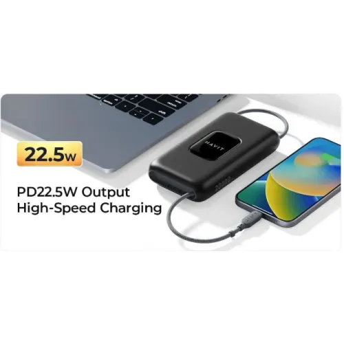 The Havit PB35 20000mAh Power Bank is a high-capacity portable charger designed for reliable, fast, and convenient charging on the go. The Havit Power Bank is built to deliver long-lasting performance, making it an ideal companion for travelers, professionals, and heavy smartphone users who need uninterrupted power throughout the day. With its massive 20000mAh battery capacity, this power bank can charge most smartphones up to 4–6 times, tablets 2–3 times, and even support smaller gadgets like Bluetooth headphones or smartwatches multiple times before needing a recharge. The inclusion of a USB-C cable ensures modern compatibility, offering faster input and output speeds compared to traditional micro-USB ports. This makes it perfect for charging newer devices that rely on USB-C technology. Crafted with a sleek and durable design, the Havit PB35 is compact enough to fit into backpacks or handbags, yet powerful enough to serve as a dependable backup power source. It features multiple output ports, allowing users to charge more than one device simultaneously, which is especially useful for families or professionals carrying multiple gadgets. The intelligent charging system provides overcharge, over-discharge, and short-circuit protection, ensuring both the safety of your devices and the longevity of the power bank itself. It combines fast charging, universal compatibility, and robust safety features into one device, making it a top choice for anyone seeking reliable portable power. Whether you’re commuting, traveling, or working remotely, this Havit PB35 power bank ensures your devices stay powered up without interruption.