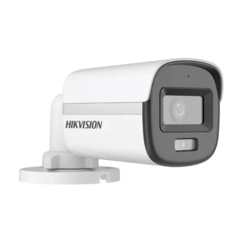 The Hikvision DS-2CE10DF0T-LPFS/S 2MP Bullet CC Camera is a dependable surveillance system that provides high-quality images and durability for indoor and outdoor applications. With a 2MP CMOS sensor and 1920 × 1080 Full HD quality, this camera delivers clear video in numerous formats (TVI, AHD, CVI, and CVBS) at up to 30 fps. The Hikvision DS-2CE10DF0T-LPFS/S 2MP Mini Bullet Camera has fixed focal lenses of 2.8 mm and 3.6 mm, providing a field of view of 105° (2.8 mm) or 84° (3.6 mm) to meet a variety of monitoring requirements. It has IR and white light hybrid technology for improved night vision, both of which are effective up to 20 meters and have a minimum luminance of 0.001 Lux for greater low-light performance. The Hikvision DS-2CE10DF0T-LPFS/S CC Camera has ICR day/night switching, 2D/3D DNR, DWDR, BLC, and HLC to provide clear, balanced, and noise-free pictures in any lighting situation. Furthermore, the built-in microphone with audio over coaxial cable allows for high-quality audio monitoring in addition to video surveillance. This camera is compact and robust, measuring 161.1 × 68.4 × 65.2 mm and weighing just 235 g. It has 360° pan/rotation and 90° tilt for variable mounting. The Hikvision DS-2CE10DF0T-LPFS/S is designed to endure operation temperatures ranging from -40°C to 60°C as well as humidity levels of up to 90%. This little bullet CC camera is an efficient and professional-grade alternative for personal, business, or commercial surveillance systems. It operates on a 12 VDC ± 25% power source and consumes only 2.9 W.