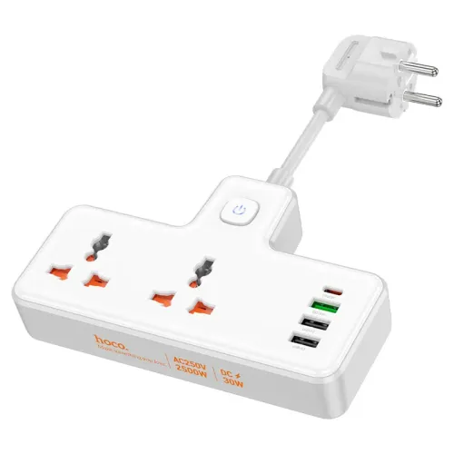 The Hoco AC11A Voyage is a versatile and compact power strip that offers a convenient solution for charging multiple devices simultaneously. Equipped with a combination of AC sockets, USB ports, and Type-C ports, this multiplug is perfect for travelers, professionals, and students who need to keep their devices powered up on the go. Its durable construction and surge protection ensure the safety and longevity of your devices, while its sleek design complements any travel aesthetic. Whether you're a frequent traveler, a busy professional, or a student, the Hoco AC11A Voyage is the perfect power strip to keep your devices charged and ready to go. Its combination of AC sockets, USB ports, and Type-C ports, along with its compact size and durable construction, make it an essential accessory for anyone on the move.
