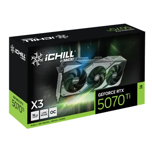 The INNO3D RTX 5070Ti iCHILL X3 GPU is a next‑generation INNO3D Graphics Card built on NVIDIA’s Blackwell architecture, delivering extreme gaming performance, advanced ray tracing, and AI‑powered rendering. Equipped with 8,960 CUDA cores, a boost clock up to 2512 MHz, and 16GB of ultra‑fast GDDR7 memory, the INNO3D RTX 5070Ti 16GB GPU ensures smooth gameplay at high resolutions and demanding workloads.