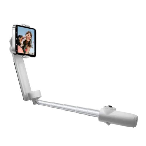 The Insta360 Flow comes with Built-In Selfie Stick & Tripod. Use a selfie stick to make shooting easier and more flexible. Get your entire crew in the shot, or alternate between high and low shooting angles in your clips. Set it down whenever and wherever you want, using the built-in tripod, and capture the moment with no additional accessories required. The Magnetic Phone Clamp makes it easy to mount your phone for on-the-go shooting.