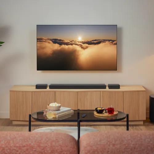 Experience cinematic audio at home with the JBL Bar 800MK2, a 7.1 channel soundbar system featuring Dolby Atmos. This setup includes a powerful soundbar, detachable surround speakers, and a wireless subwoofer, delivering multidimensional sound that surrounds you. Whether you're watching movies, gaming, or streaming music, the system creates a rich, immersive soundscape that brings content to life. Dolby Atmos ensures precise audio placement, making every scene feel more realistic and engaging.
