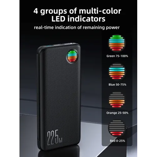 The Joyroom JR-L015 22.5W 20000mAh Power Bank is a high-performance, multi-functional power bank designed for users who demand fast, reliable, and versatile charging on the go. With a massive 20000mAh capacity (74Wh), it ensures extended power backup for smartphones, tablets, and other USB-powered devices. Engineered with four output ports, including USB-A, Type-C, and built-in IP & dual C cables, this power bank supports simultaneous charging of up to four devices at full speed, making it ideal for travel, outdoor adventures, and emergency use. The Joyroom JR-L015 features advanced fast-charging technology, delivering up to 22.5W output via USB-A and cable ports, and 20W via Type-C, ensuring rapid power delivery for compatible devices. Its dual input options (Type-C and Micro USB) support up to 18W fast input, allowing quick recharging of the power bank itself. The 2-in-1 flashlight design adds utility in low-light environments, while the multicolored LED indicators provide real-time updates on remaining battery power, enhancing user convenience. With a rated capacity of 12000mAh, this Joyroom power bank balances high energy storage with efficient output, making it a dependable companion for heavy users. Whether you're commuting, camping, or managing multiple devices, the Joyroom JR-L015 offers a robust and stylish solution for uninterrupted power. Its sleek design, powerful specs, and smart features make it one of the best 20000mAh fast-charging power banks.