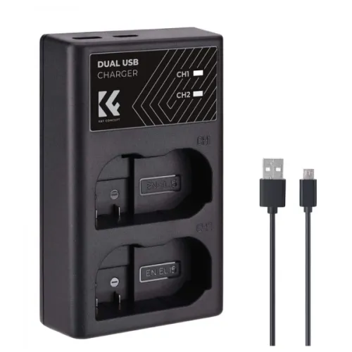The K&F Concept EN-EL15 Dual Slot Battery Charger is a quick, dependable, and adaptable charging option for Nikon users who rely on K&F Concept EN-EL15 batteries. This K&F Concept EN-EL15 Dual Slot Battery Charger includes a dual slot rapid charging connector that allows users to charge two EN-EL15 batteries at the same time, saving critical time during shoots. It has both Type-C and Micro USB interfaces, reflecting the transition toward Type-C input as the future standard while yet providing backward compatibility for enhanced convenience. As a K&F Concept Battery Charger, it is fully compatible with Nikon EN-EL15/EN-EL15a/EN-EL15b camera batteries and works with a variety of camera models, including the Nikon D7000, D7100, D7200, D7500, D750, D850, D810, D810A, D800, D800E, D610, D600, D500, Z6, Z7, and V1. When charging a single battery, the K&F Concept EN-EL15 Battery Charger provides 700mA of output current, and 500mA per slot when both are in use. This K&F Concept Dual Slot Battery Charger has sophisticated safety features, including over-voltage, over-current, high-temperature, and short-circuit protection. An integrated LCD gives real-time charging status updates, and smart chip technology protects the battery's health throughout the process. This K&F Concept EN-EL15 Dual Slot Battery Charger with Type-C Cable is compatible with any USB power source, including laptops, PCs, automotive USB adapters, and mobile power banks, making it the ideal charging option for professionals and photography lovers on the road.