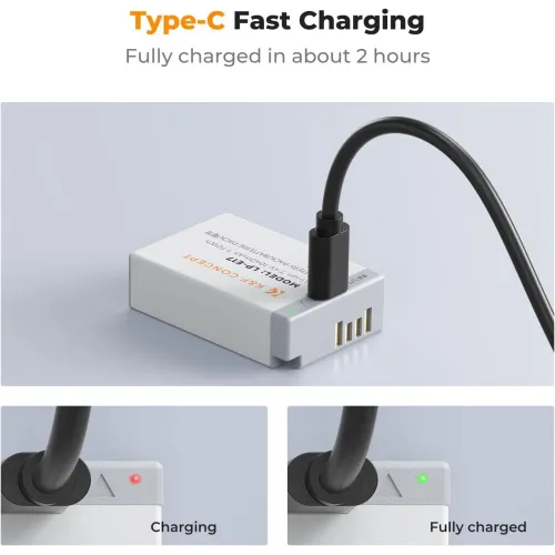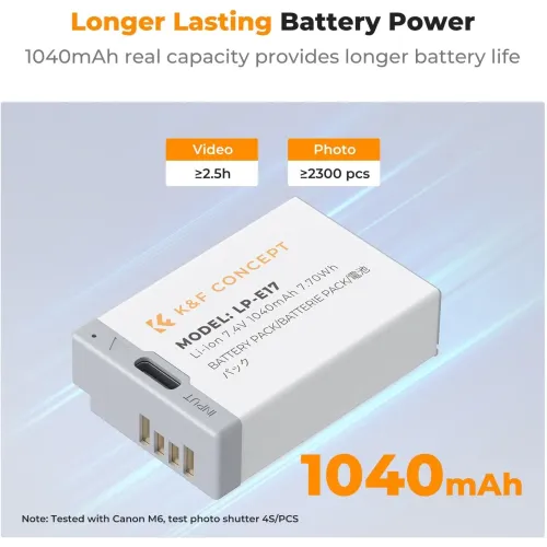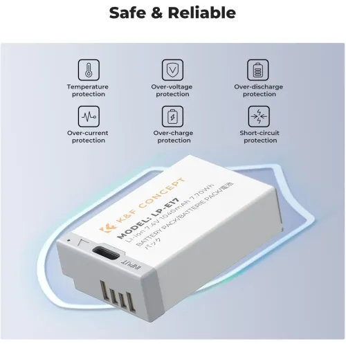 The K&F Concept LP-E17 1040mAh Type-C Camera Battery is a must-have item for photographers and content makers for their Canon cameras. This high-performance battery is compatible with a wide range of Canon models, including the EOS M3, M5, M6, M6 Mark II, 750D, 760D, 800D, and more. With a 1040mAh capacity, the K&F Concept LP-E17 Camera Battery allows you to enjoy long shooting sessions without worrying about battery life. One of the most creative aspects of the K&F Concept LP-E17 1040mAh Camera Battery is its built-in USB-C charging connector, which enables simple and convenient recharging via USB-C. This eliminates the need for an external charger or dock, hence reducing gear clutter. Whether you are on the go or in the studio, this all-in-one battery solution removes the need for cumbersome charges, making it ideal for photographers who travel light. The K&F Concept LP-E17 1040mAh Type-C Camera Battery also has an intelligent LED charging indicator that offers real-time feedback on the charging state, so you are always aware of the power level. Additionally, the K&F Camera Battery includes built-in protection against overcharging, overheating, and short circuits, allowing you to use it with confidence. Its tiny and portable design makes it simple to transport extra batteries without adding bulk, allowing you to concentrate on your creative work.