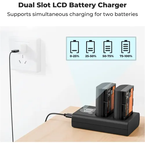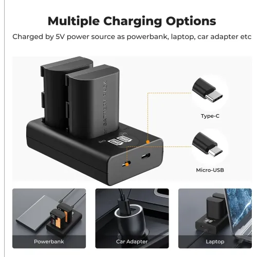 The K&F Concept LP-E6P 2400mAh Camera Battery is an excellent choice for photographers and videographers who require extended shooting sessions with their Canon cameras. This high-capacity battery is fully compatible with Canon LP-E6, LP-E6N, LP-E6NH, and LP-E6P models, making it an excellent choice for popular Canon cameras, like as the EOS 5D Mark II, III, IV, 6D, 6D II, 7D, 7D II, 80D, 90D, R5, R6, and others. With a 2400mAh capacity, the K&F Concept LP-E6P Camera Battery offers long-lasting power, enabling you to capture more images and videos without needing frequent recharges. One of the most notable characteristics of the K&F Concept LP-E6P 2400mAh Camera Battery is its rapid twin USB-C charger, which can charge two batteries simultaneously, making it an excellent choice for busy professionals or creatives who need to keep their equipment charged throughout the day. The charger includes LED status indicators, which provide clear feedback on the charging progress of each battery. The clever LCD display improves the charging experience by properly displaying the state of the batteries. The K&F Concept LP-E6P 2400mAh Camera Battery prioritizes safety above all else. It includes built-in safety against overcharging, overheating, and short circuits, ensuring that your equipment is safe to use. Whether you are working in the studio, on location, or traveling, this battery's compact and travel-friendly design allows you to carry many backups without adding volume to your kit.