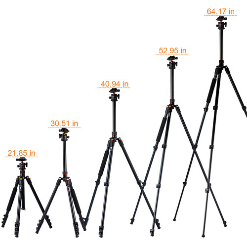 K&F Concept SA234 Aluminum DSLR Camera Tripod comes with 360 Panorama Ball Head Quick Release Plate for Travel and Work. This tripod fetured with Load Capacity: 22 lb, Maximum Height: 61.6", Minimum Height: 16.3", Leg Sections: 4, Aluminum Leg Tubes with Flip Locks, Arca-Type Compatible QR Plate Included. This tripod has a load capacity of 10kg and includes a ball head with an Arca-type compatible quick release plate. This new K&F Concept SA234 Aluminum DSLR Camera Tripod hs no warranty.