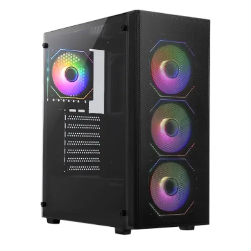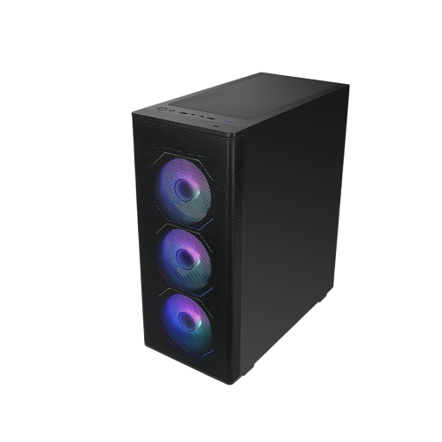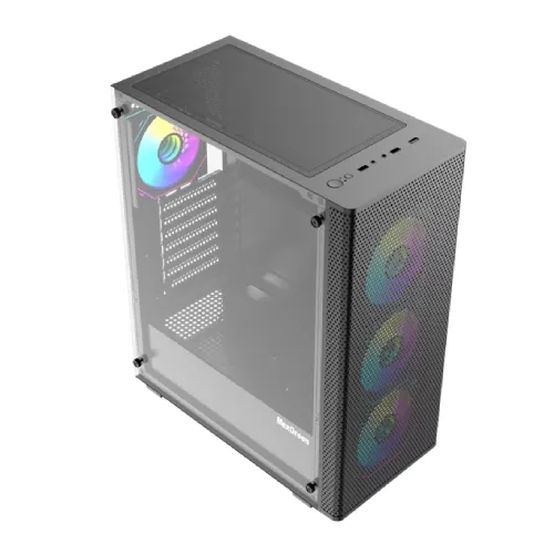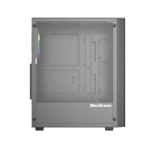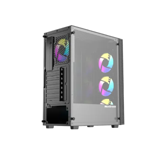 The MaxGreen PS195-15 Mid-Tower ATX Gaming Case with M57 ARGB Fan is a stylish and performance-driven chassis designed for gamers and PC enthusiasts who want both functionality and aesthetics in their build. Crafted with a durable steel frame and a tempered glass side panel, it allows users to showcase their hardware and vibrant ARGB lighting effects. The MaxGreen PS195-15 case comes pre-installed with four ARGB fans, including the M57 ARGB fan, ensuring excellent airflow and customizable illumination to match any gaming setup. Its mesh front panel enhances ventilation, while support for multiple fan and radiator configurations including up to a 360mm radiator in the front makes it suitable for high-performance cooling solutions. The PS195-15 supports ATX motherboards, large GPUs, and multiple expansion slots, offering flexibility for future upgrades. On the front I/O, it provides convenient access to one USB 3.0 port, two USB 2.0 ports, and HD audio connections, making it practical for everyday use. With its sleek black finish, modern design, and balance of affordability and premium features, the MaxGreen PS195-15 is an excellent choice for gamers who want a case that combines durability, airflow, and eye-catching ARGB aesthetics.