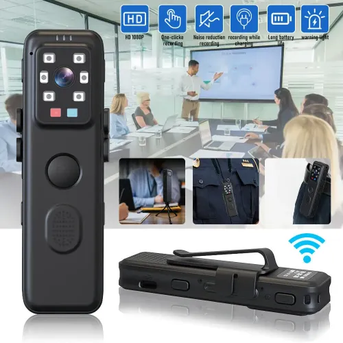 The MC81 WiFi HD Mini Body Camera is a smart choice for personal security, law enforcement, and discreet recording. It features a standard camera shape with a wide 150-degree recording angle for full scene coverage. The Action camera captures sharp images with a 4032 x 3024 resolution and smooth video at 1920 x 1080 Full HD and 30FPS. The built-in 1/4 inch CMOS sensor ensures clear footage in various lighting conditions.This mini body cam supports Wi-Fi connectivity, making it easy to transfer files to your phone or computer. It works with iOS, Android, and Windows 7 or above, offering broad compatibility. The camera uses a Type-C USB port for fast charging and data transfer. Charging time is around 3 to 4 hours, and it runs efficiently with DC5V ± 5% input and 150–170mA power consumption.The MC81 includes a built-in -38dB microphone for crisp audio recording. It supports T-Flash card storage, giving users flexible memory options. The camera uses AVI compression format to save space without losing quality. For added safety, it features red and blue warning lights for alarm detection.Its compact size and lightweight design make it easy to wear or carry. Whether clipped to clothing or mounted in a fixed spot, the MC81 delivers reliable performance. This HD mini body cam is ideal for security professionals, commuters, delivery workers, and anyone needing portable surveillance.