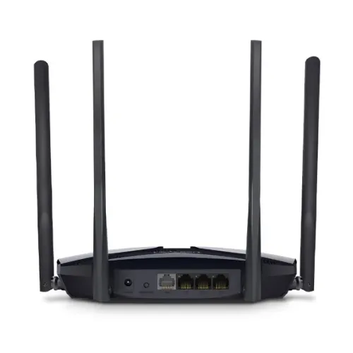 The Mercusys MR80X AX3000 Dual-Band Wi-Fi 6 Gigabit Router is a powerful networking solution designed to deliver optimal performance, reliability, and security for modern households and offices. Featuring blazing-fast Wi-Fi 6 speeds up to 3 Gbps (2402 Mbps on 5 GHz + 574 Mbps on 2.4 GHz), this router ensures seamless browsing, streaming, gaming, and downloading across multiple devices simultaneously. With advanced MU-MIMO and OFDMA technologies, it reduces congestion and boosts average throughput, making it ideal for smart homes with numerous connected devices. Equipped with 4× high-gain omni-directional antennas and Beamforming technology, the MR80X extends strong, stable signals to every corner of your home. Enhanced WPA3 security protocols safeguard your network, while Gigabit WAN and LAN ports maximize wired performance for bandwidth-heavy tasks. Eco-conscious users benefit from Target Wake Time (TWT), which lowers power consumption for mobile and IoT devices, and BSS Coloring minimizes interference from neighboring networks for smoother connections. Intelligent Smart Connect automatically assigns the best band for each device, ensuring optimal efficiency. Compact yet robust, the Mercusys MR80X supports multiple WAN types (Dynamic IP, Static IP, PPPoE, L2TP, PPTP), advanced firewall protection, VPN server options, and guest networks for secure sharing. Easy to manage via web interface or mobile app, this Mercusys router combines a user-friendly design. The Mercusys MR80X AX3000 is the ultimate choice for anyone seeking fast, secure, and future-ready Wi-Fi 6 connectivity.