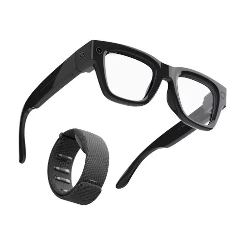 | SpecialFeatures | 2 custom-built speakers (open ear) Custom 5-mic Array (2 in left arm, 2 in right arm, 1 near nose pad) and 1 contact mic on nose bridge Voice Command: Ask”Hey Meta” Camera: 12 MP ultra wide 3x Zoom Image: 3024 x 4032 pixels Video: 1440 x 1920 pixels @30fps Display: 20 deg FOV monocular display, 600x600 pixels Lens Treatment: Transitions Gen8 Wristband tech: Haptic Feedback Wristband Control: High Performance EMG |