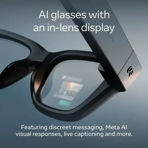 The Meta Ray-Ban Display AI Glasses and Meta Neural Band revolutionize wearable technology with advanced AI features. These smart glasses weigh only 68 g in the regular size and 70 g in the large, including a protective case that weighs 169 g. They offer Transitions Gen8 lenses in clear or grey, which adjust to various lighting settings. The Meta Ray-Ban Display integrated display provides a full-color, high-resolution 600x600 pixel monocular vision with a 20-degree field of view, seamlessly integrating into a single lens for an immersive experience. A 12 MP ultra-wide camera with 3x zoom takes sharp photographs of 3024 x 4032 pixels and smooth videos of 1440 x 1920 pixels at 30fps. For audio, the Meta smart glasses have dual custom-built open-ear speakers and a 5-mic array with an extra contact mic for better sound quality during calls and voice commands. The Meta Ray-Ban Display includes built-in support for the "Hey Meta" voice assistant, allowing users to operate functions hands-free. Touch controls give additional convenience. The Meta Neural Band, available in small, medium, and large sizes, features high-performance EMG technology with haptic feedback and an 18-hour battery life, increasing engagement via enhanced gesture detection.