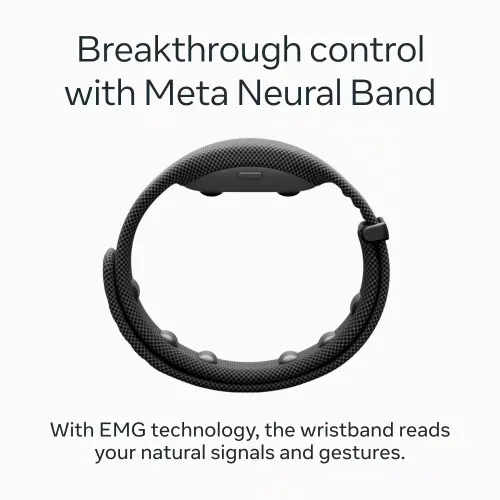 To help you better control your content, Meta Neural Band uses EMG technology to decipher the natural signals produced by your muscular activity. You can read your discussions as you hear them thanks to your glasses' ability to translate and caption in real time when you use Meta Ray-Ban Display's live captioning feature.