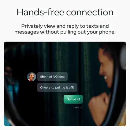 Use the in-lens display to discreetly send brief responses, texts, videos, pictures, and video messages. Hands-free, privately reply to messages on your phone, Instagram, WhatsApp, and Messenger. You can read your discussions as you hear them thanks to your glasses' ability to translate and caption in real time when you use Meta Ray-Ban Display's live captioning feature.