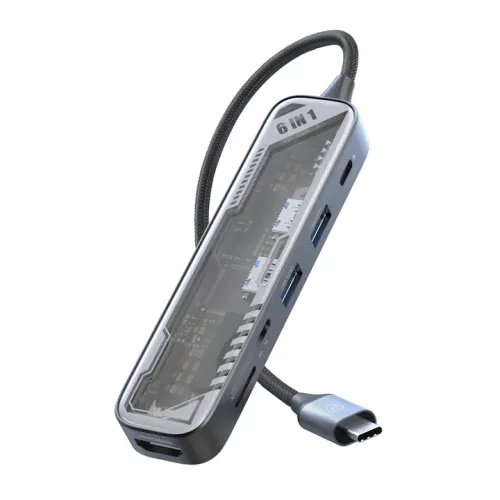 The Micropack MDC-N6T 6-in-1 Multiport Type-C Hub is a flexible and elegant accessories that will boost your productivity and simplify your networking demands. It has a translucent, scratch-resistant gloss that goes well with its sleek, contemporary design. It is made of high-strength acrylic and aluminum alloy. The hub has a cutting-edge display that highlights its core board for a sophisticated yet modern look. Because of its matte aluminum alloy panel's effective heat dissipation, the inside chips remain stable and cool throughout operation. The Micropack MDC-N6T Type-C Hub can support various devices, including PD power delivery, USB 3.0, HDMI 2.0, TF/SD 3.0 card readers, and compatibility with Type-C connectors. This 6-in-1 feature makes it easy to integrate with mobile devices and provides simple screen mirroring and data transfers. High-speed transmission is supported by the Micropack MDC-N6T 6-in-1 Multiport Type-C Hub, which offers USB 3.0 connections for blazing-fast data transfers and an immersive 4K experience at 60Hz via HDMI. You can work more efficiently at home or on the go thanks to its USB 3.2 Gen 1 Type-C interface, which guarantees speedy file sharing and peripheral connectivity. With a maximum output of 100W, the hub's USB-C connector offers Power Delivery (PD) for power management, enabling you to charge your devices while using the hub. With a 900mAh charging capacity per port, the two USB-A connections provide 5Gbps data transmission speeds and produce stunning images at resolutions up to 4K@60Hz. The TF/SD card readers, which allow 5Gbps high-speed data transfer, further increase convenience. The 150mm cable length of the Micropack MDC-N6T Type-C Hub provides versatility, making it a perfect partner for anyone needing effective, portable connectivity solutions.