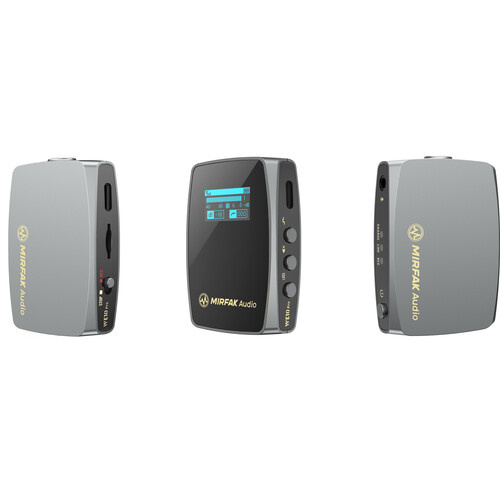 The MIRFAK WE10 PRO Dual Transmitter Wireless Microphone System built-in status panel provides real-time metering of the audio stream, gain setting, cutoff filter, and system status. The system includes a battery life of more than 8 hours, a 3.5mm headphone connector, a 3.5mm line-out, and USB-C.