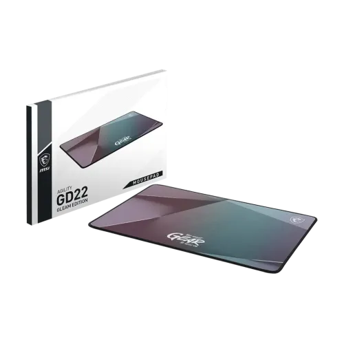 The MSI Agility GD22 Gleam Edition Gaming Mousepad brings elegance and performance together in one sleek package. Designed for gamers who crave precision and style, this mousepad features a Silk Gaming Fabric surface that delivers ultra-smooth glide and pixel-perfect tracking—ideal for fast-paced FPS battles, MOBA skirmishes, or creative workflows. The Gleam Edition’s shimmering design adds a refined aesthetic to your setup, making it a standout accessory that performs as beautifully as it looks.With its extra-soft texture, the MSI Agility GD22 GLEAM EDITION ensures lasting comfort during extended gaming or work sessions, reducing wrist strain and enhancing overall ergonomics. The anti-slip natural rubber base keeps the pad securely in place, even during intense mouse movements, while the reinforced stitched edges prevent fraying and extend the product’s lifespan. Whether you're upgrading your gear or building a premium battlestation, the MSI Agility GD22 Gleam Edition is more than just a mousepad—it's a statement of smooth control, comfort, and visual brilliance.