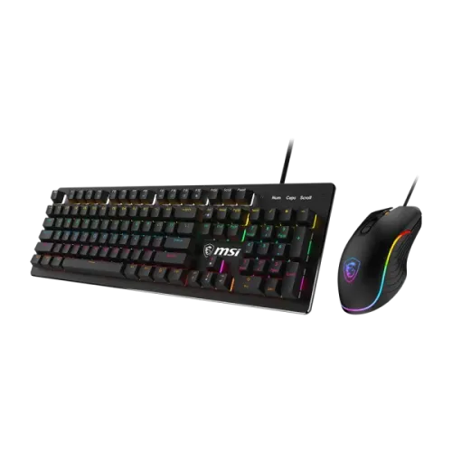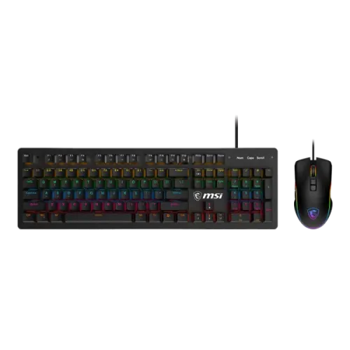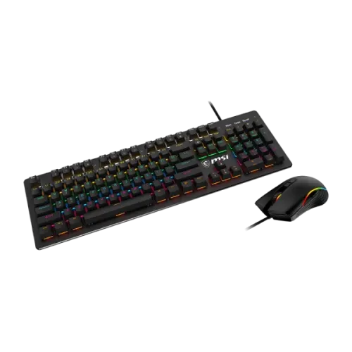The MSI FORGE GK300 COMBO is a powerhouse pairing of mechanical precision and gaming-grade performance, built for users who demand reliability, responsiveness, and style. The mechanical blue switches on the keyboard offer a satisfying tactile bump and audible click, ideal for fast typists and competitive gamers. With a 20 million keystroke lifespan, full-size layout (104/105/108 keys depending on language), and 26-key anti-ghosting, it ensures every command registers flawlessly—even in intense multi-key scenarios. The 9-mode RGB backlighting allows you to customize your setup with vibrant lighting effects that match your mood or game theme. At the same time, dedicated hotkeys provide instant access to media controls, lighting presets, and system widgets for streamlined productivity. Complementing the MSI FORGE GK300 COMBO is a high-precision optical gaming mouse featuring a 7,200 DPI sensor with four switchable DPI presets (1200 / 2400 / 4800 / 7200), allowing users to fine-tune sensitivity for different tasks—from pixel-perfect sniping to smooth desktop navigation. The mouse’s micro switches, rated for 10 million clicks, ensure long-lasting durability, while its 5-mode RGB lighting adds dynamic flair to your gaming rig. Ergonomically designed with 7 programmable buttons, the MSI FORGE GK300 COMBO fits comfortably in the hand, enhancing control and reducing fatigue during extended sessions. With USB 2.0 plug-and-play connectivity, compatibility with Windows 10 and above, and generous 1.5m braided cables for both keyboard and mouse, the FORGE GK300 COMBO delivers a seamless user experience. It’s solidly built yet easy to set up. Whether you're upgrading your gaming station or seeking a reliable combo for work and play, MSI’s GK300 Combo offers unbeatable value, performance, and style in one sleek package.