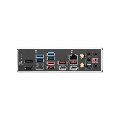 MSI MAG Z790 TOMAHAWK WIFI 14th Gen Motherboard is equipped with an Intel Z790 chipset and LGA 1700 socket. This 14th-generation motherboard has four DDR5 RAM slots supporting dual channel memory and speeds up to 7200 MHz when overclocked. Seven SATA III and four M.2 interfaces provide ample room for storage and support RAID 0, 1, 5, and 10. Install GPUs or other adapter cards via PCIe 5.0 x16, PCIe 4.0 x16, and PCIe 3.0 x1 slots. Take advantage of fast networking with a 2.5 GbE Intel LAN and Wi-Fi 6E; connect to wireless peripherals with ease using Bluetooth 5.2. The Realtek ALC4080 audio codec supports 7.1 channel surround sound, while rear ports allow for analog or digital output. Connect wired peripherals via four USB 3.2 Gen 1 and four Gen 2 Type-A ports, or via USB 3.2 Gen 2 and 2x2 Type-C ports. Output video via DisplayPort and HDMI. The rear I/O panel also sports Clear CMOS and Flash BIOS buttons. Internal headers provide support for front-panel USB 3.2 Gen 2 Type-C and USB 3.2 Gen 1 and 2.0 Type-A ports, RGB connectors, chassis intrusion, a TPM module, and more. Wi-Fi 6E supports the 6 GHz spectrum, MU-MIMO, and BSS color technology and delivers speeds up to 2400 Mb/s.