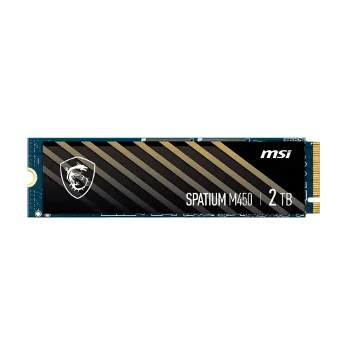 The MSI SPATIUM M450 2TB PCIe 4.0 NVMe M.2 SSD is a high-performance storage solution designed to deliver blazing speeds and exceptional reliability. This SSD is optimized for PCIe Gen4 interfaces, ensuring you can make the most out of your cutting-edge hardware. With sequential read speeds of up to 3500 MB/s and sequential write speeds of up to 1200 MB/s, this SSD offers impressive data transfer rates, allowing you to access and save files with remarkable efficiency. The MSI SPATIUM M450 2TB PCIe 4.0 NVMe M.2 SSD features the PHISON E18 controller, a powerful and reliable controller that enhances the overall performance of the drive. Combined with 3D NAND Flash technology, this SSD can store large amounts of data in a compact form factor. This SSD is its built-in data security and error-correction capabilities. These features not only protect your data but also extend the lifespan of the NAND flash storage, making it a durable and reliable choice for your storage needs. The MSI SPATIUM M450 2TB PCIe 4.0 NVMe M.2 SSD offers low latency, ensuring smooth gameplay and quick game loading times. You can enjoy an optimized high-performance bandwidth and throughput, providing you with an edge in competitive gaming. Designed in the M.2 2280 form factor, this MSI SSD is easy to install into various devices, including external enclosures, desktops, and laptops, making it a versatile and convenient storage solution for a wide range of applications.