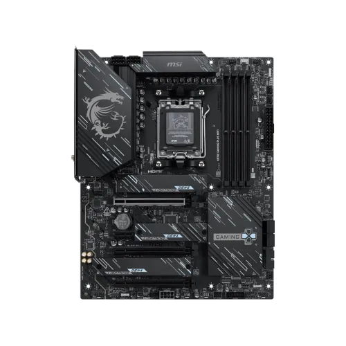 The MSI X870E GAMING PLUS WIFI AM5 ATX Motherboard is a powerful, feature-rich solution designed for enthusiasts, gamers, and creators using AMD's most recent desktop CPUs. This MSI motherboard, built on the powerful AMD X870E chipset, supports AMD Ryzen 9000, 8000, and 7000 Series CPUs on the sophisticated AM5 socket for future-proof performance and compatibility. The MSI X870E GAMING PLUS WIFI ATX Motherboard has four DDR5 UDIMM slots that can handle up to 256GB of dual-channel memory at rates of up to DDR5-8200+ MT/s using AMD EXPO and overclocking settings, which are specifically tuned for Ryzen 9000 CPUs. Memory features including CUDIMM support, Clock Driver bypass mode, and non-ECC unbuffered DIMMs provide cutting-edge performance, while double-sided latching DIMM slots increase installation reliability. The MSI X870E GAMING PLUS WIFI Motherboard delivers versatile display connectivity via HDMI 2.1 (4K at 60Hz) and a USB4 Type-C port with DisplayPort 1.4 support (4K at 120Hz) available on processors with integrated graphics, making it ideal for high-resolution, multi-display setups. With three PCIe x16 slots, including one PCIe 5.0 x16 slot directly from the CPU, the MSI X870E GAMING PLUS WIFI ensures maximum bandwidth for next-gen GPUs and expansion cards. Storage options include three M.2 slots with one PCIe 5.0 x4 slot and four SATA 6Gbps ports, enabling advanced RAID configurations: RAID 0, 1, 10 for SATA and RAID 0, 1, 5 for M.2 NVMe drives (RAID 5 exclusive to Ryzen 9000 Series). The Realtek ALC897 codec powers immersive 7.1-channel HD audio, enhancing the gaming and content creation experience. Networking is equally powerful, with Realtek 8126VB 5G LAN and a built-in Wi-Fi 7 module (802.11be, MU-MIMO, and Bluetooth 5.4), offering ultra-fast, low-latency wireless connections. The MSI X870E GAMING PLUS WIFI AM5 ATX Motherboard is equipped with extensive USB connectivity, including USB4 40Gbps Type-C, USB 20Gbps Type-C, USB 10Gbps ports, and multiple USB 5Gbps and 2.0 ports, ensuring high-speed data transfer and peripheral compatibility. Engineered for performance and stability, the board features a 14+2+1 Duet Rail Power System, dual 8-pin CPU power connectors, Core Boost, Memory Boost, and an 8-layer PCB with 2oz thickened copper for enhanced thermal and electrical performance. MSI’s Frozr Guard cooling system includes an extended heatsink, 7W/mK MOSFET thermal pads, choke thermal pads, and EZ M.2 Shield Frozr II, delivering reliable thermal regulation during intense workloads. For builders, DIY-friendly features such as EZ Debug LEDs, EZ M.2 Clip II, EZ PCIe Clip II, and EZ Antenna simplify setup and troubleshooting. Whether you're building a cutting-edge gaming rig or a professional workstation, the MSI X870E GAMING PLUS WIFI AM5 ATX Motherboard offers unmatched performance, connectivity, and durability, solidifying its position as one of the most advanced and versatile options in the MSI motherboard lineup.