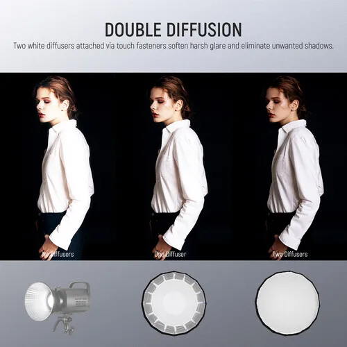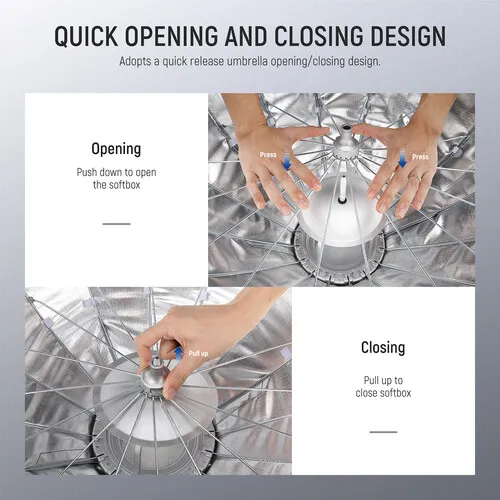 The Neewer NS65U Parabolic Softbox is a high-quality lighting solution designed for photographers and videographers who demand professional and consistent results. Featuring a 25.6-inch (65 cm) hexadecagon parabolic design, the Neewer NS65U Softbox delivers smooth, even, and natural-looking light—perfect for portraits, fashion, and product photography. Its silver interior enhances light output while preserving accurate tones and contrast. The Neewer NS65U comes equipped with a built-in Bowens-type S-mount speed ring, ensuring full compatibility with a wide range of studio strobes and LED lights. Thanks to its umbrella-style quick-open mechanism, setup and folding are fast and hassle-free, making it ideal for both studio use and on-location shoots. The Neewer NS65U Softbox includes a removable front diffuser and inner baffle for adjustable softness, along with a fabric honeycomb grid to control light spill and direct illumination precisely. Crafted from durable fabric materials, it’s lightweight at only 3.1 lb (1.4 kg) and compact when closed (19.7 x 7.5 x 7.5 inches), ensuring portability without sacrificing performance. Whether you’re a professional or an enthusiast, the Neewer NS65U Parabolic Softbox is a versatile and essential tool for achieving soft, controlled, and cinematic lighting effects.
