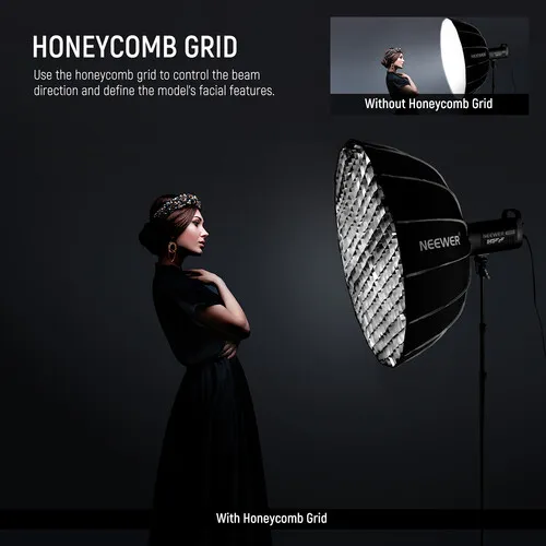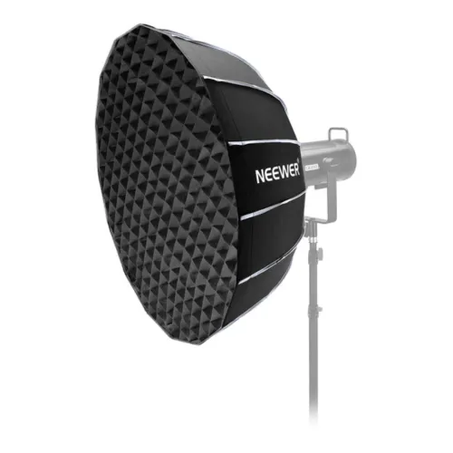 The Neewer NS85U Parabolic Softbox is a professional-grade lighting modifier built for photographers and videographers who demand soft, even, and natural illumination. With its 33.5-inch diameter parabolic design, the Neewer NS85U Softbox creates smooth and flattering light, ideal for portraits, fashion, and product photography. Designed with an integrated Bowens-type speed ring, the Neewer NS85U ensures broad compatibility with popular studio lights and continuous light sources. Its silver interior enhances light reflection for maximum brightness, while the removable front diffuser and inner baffle provide customizable softness and control over light diffusion. Additionally, the Neewer NS85U Softbox includes a fabric honeycomb grid to help focus and direct light precisely where needed, minimizing unwanted spill. Constructed from durable fabric materials with a quick-open umbrella-style design, this softbox is quick to assemble and easy to transport. Measuring ø85.1 x H39.1 cm when open and 61 x 19.1 x 19.1 cm when closed, and weighing only 1.9 kg (4.1 lb), the Neewer NS85U Parabolic Softbox is a lightweight, portable, and reliable lighting solution for both studio and on-location shoots.