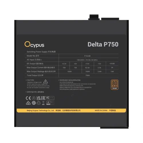 Certified with 80 PLUS Bronze efficiency (≥87% at 50% load), the Ocypus 750W Power Supply ensures reduced energy loss and improved thermal performance. Its Active PFC + Double Forward + DC‑to‑DC topology provides clean, stable voltage regulation across all components.