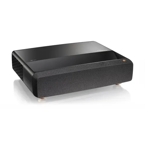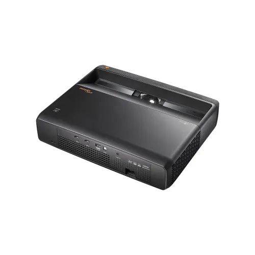 The Optoma L1 Plus 2500 Lumens Ultra Short Throw 4K LED Home Projector is a cutting-edge device designed to transform your home entertainment experience. With its 4K UHD resolution (3840x2160) and 2500 lumens of brightness, this ultra short throw projector delivers incredibly sharp images, rich details, and vibrant colors, making it perfect for home cinema enthusiasts. The ultra short throw lens allows for a large screen projection from a very short distance, ideal for small spaces and eliminating shadows. Supporting multiple aspect ratios, including 16:9, and offering a screen size range from 80 inches to 130 inches diagonal, it adapts to various viewing needs. The impressive contrast ratio of 1,800,000:1 provides deep blacks and brilliant whites, enhancing the overall visual experience. Utilizing advanced 4LED technology, the Optoma L1 Plus ensures high-quality projections and a long lifespan of up to 30,000 hours, providing reliable and maintenance-free operation. Connectivity is seamless with three HDMI inputs, a USB-A power output, and a 3.5mm audio output, allowing easy connection of various devices. The built-in 10W speaker provides adequate audio output, and the included Android TV dongle enables access to popular streaming apps like Netflix. Designed for convenience and versatility, the Optoma L1 Plus supports 360° installation and is perfect for 24/7 operation, making it a versatile choice for any home entertainment setup.