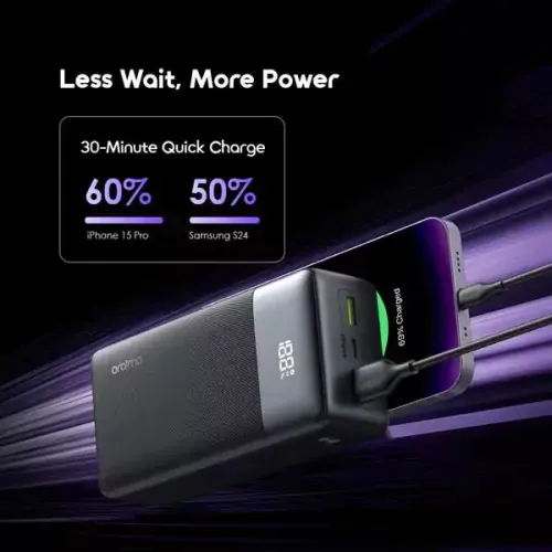 The Oraimo PowerNova QF1 27000mAh 22.5W Power Bank is a premium-grade portable charger built to meet the growing power needs of modern devices. This Fast Charging Portable power bank stands out for its massive 27000mAh battery capacity. With this high capacity, it can charge most smartphones up to six times or more, making it perfect for users who are constantly on the move, whether for business trips, vacations, outdoor adventures, or daily commutes. The 22.5W fast charging output ensures that your devices charge quickly and efficiently. It supports advanced charging protocols such as PD (Power Delivery) and QC (Quick Charge), which means it can rapidly charge not only smartphones but also tablets, Bluetooth speakers, earbuds, and even some smaller laptops or gaming devices. The Oraimo PowerNova QF1digital display power bank is equipped with both USB-A and Type-C ports, allowing dual-device charging without compromising on speed. This dual output makes it an excellent choice for users who carry multiple gadgets and need to power them simultaneously. The Oraimo OPB-7270Q Power Bank has its smart digital display. The high-precision LED display shows the remaining battery percentage, input/output status, and charging mode in real time. This helps users monitor power usage and plan their recharges more efficiently. It includes a multi-protection safety system that defends against overcharging, short circuits, overheating, overvoltage, and overcurrent. This ensures complete peace of mind during both charging and discharging, protecting your devices from any electrical mishaps. The Oraimo PowerNova QF1 power bank features a durable, anti-scratch matte finish that not only feels premium in hand but also resists fingerprints, smudges, and everyday wear. Its sleek, minimalist design makes it easy to carry in backpacks, handbags, or even larger pockets. Despite its large capacity, the build is compact and lightweight for the category, offering a perfect blend of power and portability. This Oraimo power bank is compatible with a wide range of devices, including Android phones, iPhones, iPads, smartwatches, wireless earphones, cameras, and gaming accessories. Whether you're a student with a busy campus schedule, a traveler in need of reliable power on the road, or a professional who can't afford a dead battery, the Oraimo PowerNova QF1 27000mAh Power Bank provides the power backup you can trust.