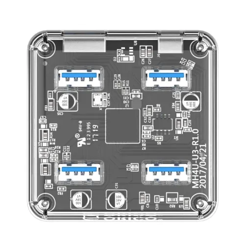 The Orico MH4UC-C3 4-Port Transparent USB3.0 Hub is a powerful, elegant, and portable USB expansion device that improves productivity and simplifies communication. This innovative hub, designed with a Type-C input interface, connects seamlessly to current laptops and desktops, extending a single port into four USB-A 3.0 output ports, making it excellent for handling several devices at the same time, such as external hard drives, USB flash drives, keyboards, and mice. The Orico MH4UC-C3 4-Port USB3.0 Hub has super-fast data transfer speeds of up to 5 Gbps, making it ideal for swiftly and effectively uploading huge files. The inclusion of a VL817 control chip enables steady data transfer, optimum power management, and built-in safety against overheating and short circuit. The hub has a separate Micro-B to USB-A data connection, which is by default one meter long and allows for flexible positioning and less cable clutter. Power is supplied via a dedicated Micro USB 3.0 input. The Orico MH4UC-C3 Hub is enclosed in a sleek, transparent polycarbonate (PC) chassis with black ABS components, allowing customers to enjoy the inside circuitry without sacrificing robustness or elegance. A blue LED indicator light reveals the current functioning state, verifying power and connection at a glance. This lightweight and portable Orico 4-Port USB3.0 Hub is only 56.7mm x 56.7mm x 20mm and is suitable for usage at home, at the office, or on the road. It is entirely compatible with Windows, macOS, and Linux, and it supports all common USB devices, providing a wide range of usage. It also comes with CE, FCC, and RoHS certifications, ensuring safety, dependability, and environmental compliance. Whether you're a professional who requires several device connections or a tech-savvy individual seeking an elegant USB extension solution, the Orico MH4UC-C3 4-Port Transparent USB3.0 Hub offers unparalleled versatility and cutting-edge style.