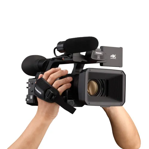 The Panasonic AG-CX350 4K Camcorder is a powerful, professional-grade video solution designed for filmmakers, broadcasters, and content creators requiring premium image quality and workflow flexibility. This Panasonic AG-CX350 Camcorder features a large 1"-type MOS sensor with 15MP effective resolution (5170 x 2908), delivering stunning UHD 4K and Full HD performance with precise optical image stabilization. Its advanced integrated lens offers 20x optical zoom (24.5–490mm 35mm equivalent) and up to 32x intelligent zoom, making the Panasonic AG-CX350 Video Camera ideal for everything from wide landscape shots to close-up telephoto capture. Professional shooters will appreciate dedicated zoom, focus, and iris control rings, along with versatile auto and manual focus options, −3 to 18 dB gain, and excellent low-light sensitivity rated at f/12 or f/13 at 2000 lux, depending on frame rate. The Panasonic AG-CX350 records in multiple high-end codecs such as AVC-Intra, AVCHD, H.265 Long GOP, and 10-bit 4:2:2 MOV, supporting HDR with HLG recording and fast variable frame-rate shooting to dual SD/SDHC/SDXC/microP2 hybrid card slots. Monitoring and operation are enhanced by a 3.2" articulating touchscreen LCD and a 1.77-million-dot OLED viewfinder. This professional 4K camcorder further includes TC In/Out, 3G-SDI and HDMI outputs, USB 3.0/2.0 ports, LANC control, and RJ45 LAN for IP streaming, monitoring, and control. With dual XLR audio inputs, a front-mounted mic, efficient 17W power usage with Panasonic AG-VBR batteries, and a lightweight 1.9 kg body, the Panasonic AG-CX350 4K Camcorder is a robust and reliable choice for live events, mobile production, and broadcast-level cinematography.