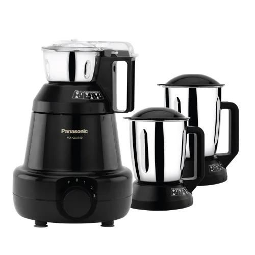 The Panasonic MX-GE3750 Mixer Grinder is a high-performance kitchen companion designed to meet the demands of modern cooking with precision, hygiene, and durability. Equipped with rust-resistant stainless steel jars and blades, this blender ensures long-term reliability and consistent grinding results, even with tough ingredients like spices, nuts, and frozen produce. Its powerful 1200W motor delivers a staggering 19000 RPM, making it one of the fastest and most efficient mixer grinders in its class. Whether you're blending smoothies, grinding masalas, or preparing chutneys, the Panasonic MX-GE3750 handles it all with ease thanks to its high-power airflow motor that keeps the system cool and stable during extended use. Designed with hygiene in mind, the mixer features no-gasket, easy-to-clean lids that eliminate residue buildup and simplify maintenance—perfect for health-conscious households. Safety is also a priority, with a secure safety lock system and easy lid-locking mechanism that prevent accidental spills and ensure smooth operation. The grinder includes three versatile jars to suit every culinary need: a 1.5L blender jar for juices and batters, a 1.0L mill jar for dry grinding, and a 0.4L chutney jar for small-batch sauces and dips. Each jar is crafted for optimal capacity and performance, allowing users to switch between tasks effortlessly. From daily meal prep to festive cooking, the Panasonic MX-GE3750 stands out as a robust, hygienic, and user-friendly solution for every kitchen. Its sleek design, advanced motor technology, and safety features make it a top choice for home chefs seeking speed, convenience, and long-lasting value.