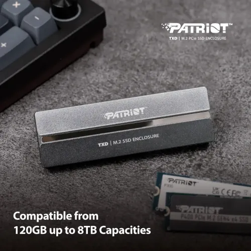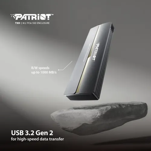 The Patriot TXD M.2 NVMe SSD Enclosure is a sleek and durable aluminum enclosure that transforms your M.2 NVMe solid-state drive into a high-performance external drive, perfect for content creators, gamers, and professionals on the go. Featuring a USB 3.2 Gen 2 Type-C interface, the Patriot TXD delivers incredible data transfer speeds of up to 10Gbps, allowing you to move large files, back up data, or run applications in seconds. Its convenient tool-free design makes installation a breeze—simply slide open the cover, insert your SSD, and you're ready to go. The lightweight yet rugged gray aluminum casing not only looks professional but also provides excellent heat dissipation to keep your drive running cool and efficiently. For a powerful, pocket-sized storage solution, the Patriot TXD M.2 PCIe SSD Enclosure is the ultimate choice.