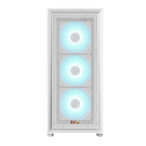 The PC Power Crystal Mesh V3 WH ATX Desktop Gaming Casing is a premium chassis that combines functionality with striking aesthetics, perfect for gaming enthusiasts. It features a full-tempered glass side panel, offering a sleek and stylish appearance while allowing a clear view of your internal components. This casing is equipped with an ARGB fan that enhances the visual appeal with customizable lighting effects, adding a vibrant touch to your gaming setup. Designed with a spacious interior, the casing can accommodate a wide range of components, including high-end GPUs, cooling systems, and additional storage devices. It supports multiple motherboard sizes, such as ATX, MICRO ATX, and E-ATX, providing flexibility for different build configurations. The casing also offers versatile storage options with ample space for both HDDs and SSDs, making it easy to expand your storage as needed. The front panel of the casing is designed for convenience, with easy access to USB and audio ports. For cooling, the casing includes multiple fan slots, ensuring optimal airflow to maintain low temperatures during intense gaming sessions. The stylish design of the tempered glass side panel not only adds a premium look but also showcases your build, making it a perfect choice for gamers who value both performance and style in their desktop gaming setup.