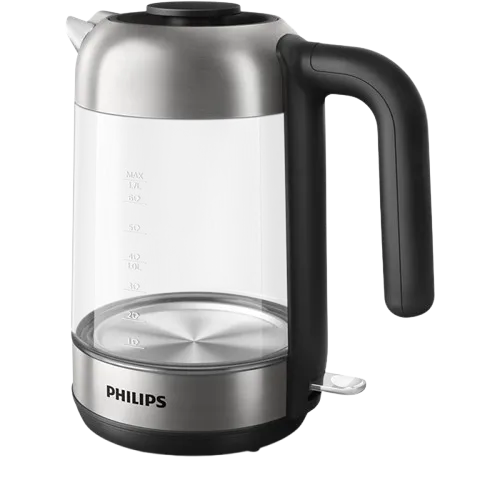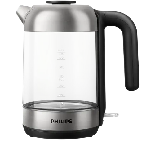 The Philips 5000 Series HD9339/81Glass Kettle is a premium appliance designed for style, performance, and safety. Featuring a sleek borosilicate glass body, this electric kettle offers a crystal-clear view of the boiling process while resisting stains and thermal shock for long-lasting clarity and durability. With a generous 1.7-litre capacity, it’s ideal for families or entertaining guests, allowing you to prepare multiple servings of tea, coffee, or instant meals effortlessly. The powerful 2200W rapid boil system ensures fast heating, saving you time during busy mornings. A striking blue LED light indicator adds a modern touch and clearly signals when the kettle is in operation. Safety is paramount with its multi-safety system, including boil-dry protection and automatic shut-off. The cordless 360° pirouette base provides convenient handling from any angle, while the concealed stainless steel heating element promotes efficient boiling and easy cleaning. Enjoy pure-tasting beverages thanks to the removable anti-calc micro-mesh filter that traps limescale particles. Additional features like the wide lid opening, ergonomic handle, and spring-loaded lid enhance usability and hygiene. Whether you're upgrading your kitchen or seeking a reliable kettle with advanced features, the Philips 5000 Series Glass Kettle is a smart and stylish choice.