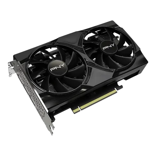 The PNY GeForce RTX 5060 8GB Dual Fan GDDR7 Graphics Card is a powerful, future-ready graphics solution. The PNY GeForce RTX 5060 8GB Dual Fan Graphics Card is designed for next-generation applications, with 3840 CUDA cores that provide great parallel processing capability for high-resolution gameplay and demanding rendering jobs. With a core frequency of 2280 MHz and a boost clock of 2497 MHz, this GPU delivers smooth and stable performance even under heavy workloads. The PNY GeForce RTX 5060 8GB Graphics Card is equipped with 8GB of high-speed GDDR7 memory running at 28 Gbps over a 128-bit interface, making it ideal for 3D rendering, texture-heavy gaming, and content creation. The PCI Express 5.0 x8 interface enables lightning-fast communication between the GPU and the system, resulting in lower latency and increased responsiveness. The PNY GeForce RTX 5060 8GB Dual Fan GPU excels in visual output, supporting up to four displays via three DisplayPort 2.1b connectors and one HDMI 2.1b port. It can deliver 4K at 480Hz or 8K at 165Hz with Display Stream Compression (DSC). This makes it suitable for immersive gaming setups and professional multi-monitor settings. HDCP 2.3 compatibility enables the smooth playback of protected 4K video. The card also includes sophisticated graphics technologies including DLSS 4, DirectX 12, and OpenGL 4.6, which provide compatibility with the most recent games and creative programs. The PNY GeForce RTX 5060 8GB Dual Fan Graphics Card has only a single 8-pin connector and consumes only 145W of power, making it ideal for use with a 448W power supply.