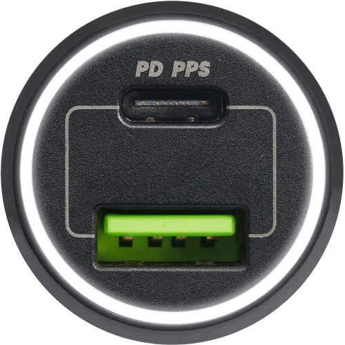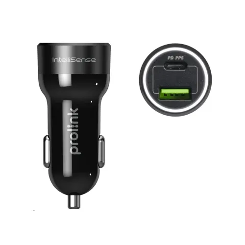 The PROLiNK PCC24501 Car Charger can charge up to two devices at the same time. This small design charger has a USB Type-C PD 3.0 connector and a Quick Charge Type-A port, and it has a total output of 51W, which is powerful enough to charge mobile devices rapidly while on the go. With its gentle LED ring light, drivers can readily detect it in the dark, and its smart safety system provides optimum safety, making it the ideal road trip companion.
