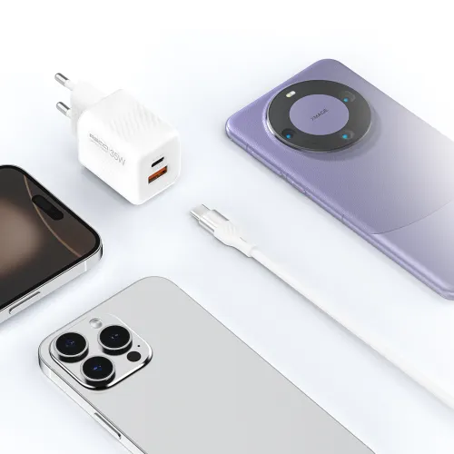The Recci RC83ECC 35W Fast Charger Adapter is a powerful and compact solution designed for efficient and safe charging. Built with advanced GaN (Gallium Nitride) technology, the Recci RC83ECC Charger Adapter ensures faster heat dissipation and higher energy efficiency. This white-colored charger features dual ports (USB-C and USB-A) and supports a maximum output of 35W, making it ideal for fast charging smartphones, tablets, and other USB-powered devices. The USB-C port delivers flexible power outputs including 5V, 9V, 10V, 12V, 15V, and 20V, with PPS support ranging from 3.3V to 11V at 3A. The USB-A port offers up to 30W output, while combined usage provides a total output of 15W (5V=3A). The Recci RC83ECC 35W Charger Adapter includes a 1.5-meter Type-C to Type-C cable, offering convenience and extended reach. Designed with durable aluminum alloy and silicone materials, it weighs just 40.5g and measures 90×175×36mm, making it highly portable. With FCC certification, universal compatibility, and a wide input range of 110-240V~ 50/60Hz 0.9A, the Recci RC83ECC 35W Fast Charger Adapter stands out as a reliable, travel-friendly charging accessory for all your devices.