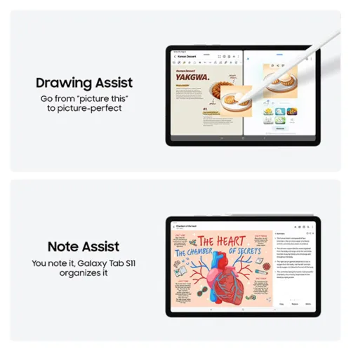 The Samsung Galaxy Tab S11 outperforms rival tablet models in terms of durability, with IP68 dust and water resistance. Additionally, the Armor Aluminum casing is designed to withstand any drops along the road. Galaxy AI allows you to effortlessly write and take notes. Note Assist automatically sums up lecture and meeting notes. Writing Assist automatically corrects faults and adapts writing style to get the exact perfect phrases.