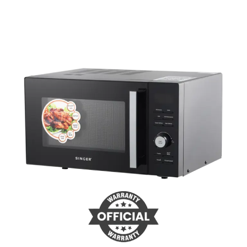 The Singer SMW25GCHLP 25L Grill Microwave Oven is a versatile kitchen essential that blends power, precision, and user-friendly design to elevate your daily cooking experience. With a generous 25-liter capacity, it’s ideal for families or anyone who enjoys preparing larger meals. Whether you're reheating leftovers, defrosting frozen items, or grilling juicy kebabs, this Singer SMW25GCHLP 25L microwave delivers consistent performance with its 900W microwave power and grill functionality—perfect for achieving crispy textures and golden finishes. The pull door design adds ergonomic convenience, while the easy control panel and kitchen timer make operation intuitive for users of all ages. Safety is a priority too, thanks to the built-in child lock, ensuring peace of mind in busy households. The time and weight defrosting feature allows for precise thawing, preserving flavor and texture without overcooking. With a cooking end signal, you’ll never miss a beat, and its sleek black finish adds a modern touch to any countertop. Operating on a standard 230V~ 50Hz voltage, this Singer microwave is engineered for reliability and energy efficiency. Whether you're grilling, heating, or experimenting with new recipes, the Singer SMW25GCHLP Grill Microwave Oven is your all-in-one solution for smart, stylish, and safe cooking.
