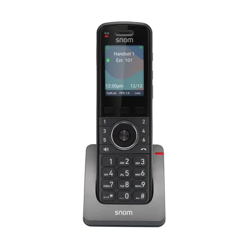 The SNOM M55 Cordless Black DECT IP Phone with Cradle is built for professionals who need mobility, clarity, and control. It features a large 2.4" color display for clear navigation and supports Shared Call Emulation (SCE), allowing users to manage calls with desk-phone-like functionality. With 6 programmable LED function keys and a total of 31 hard keys, including a backlit keypad, it offers intuitive control even in low-light settings. The M55 delivers impressive coverage—up to 50 meters indoors and 300 meters outdoors—making it ideal for offices, warehouses, and retail spaces. Its 1,500 mAh battery provides up to 240 hours of standby time, 19 hours of narrowband talk time, and 12 hours in HD wideband mode. Built with antibacterial housing and equipped with a belt clip for hands-free mobility, it’s both hygienic and practical. Wireless OTA updates keep the handset current without manual intervention, and the included charging cradle ensures it's always ready to go. Backed by a 2-year warranty, the SNOM M55 is a smart investment for teams that demand clarity, flexibility, and reliability in every call.