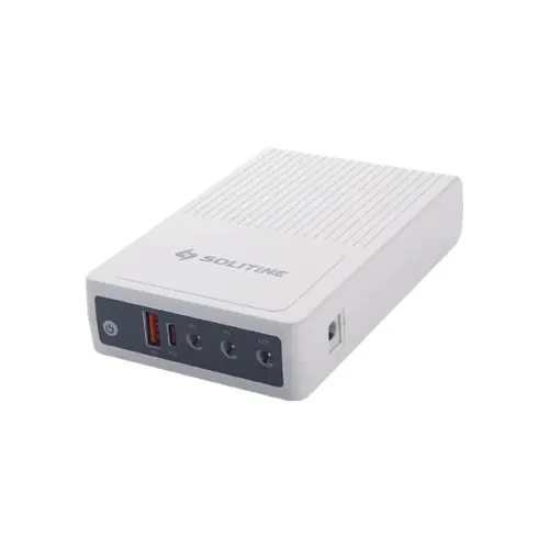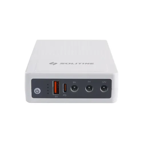 The Solitine SOL-604 10000mAh Mini UPS is a high-performance, compact power backup solution designed to provide uninterrupted power for home, office, and professional electronic setups. With its 10000mAh built-in lithium battery, the Solitine SOL-604 ensures reliable power delivery, offering a maximum output of 24W and supporting a wide input voltage range of 90-264Vac at 50-60Hz, making it compatible with virtually any AC power source. This versatile Solitine SOL-604 Mini UPS features multiple output options including USB/DC Interface 1 (5V DC, 2.4A), DC Interface 2 (9V/12V DC, 2A), and a interface (15V/24V DC, 15V 1.5A / 24V 1A), with configurable output polarity at +4.5 pins / -7.8 pins, providing seamless connectivity for routers, IP cameras, modems, and other DC-powered devices. Equipped with a microprocessor-controlled system, the Solitine SOL-604 Mini UPS protects against overload, short-circuit, overcharge, and over-discharge, ensuring safe and stable operation at all times. Its auto-start feature allows the device to power on immediately when connected to electricity, eliminating downtime and ensuring continuous operation. With selectable output voltages of 5V, 9V, 12V, 15V, and 24V, and a compact design measuring 178 x 158 x 38 mm, the Solitine SOL-604 Mini UPS is perfect for powering networking equipment, security systems, and critical DC electronics efficiently and reliably. This combination of portability, safety features, and versatile output makes the Solitine SOL-604 10000mAh Mini UPS an ideal choice for anyone seeking dependable mini UPS solutions for professional or personal use.