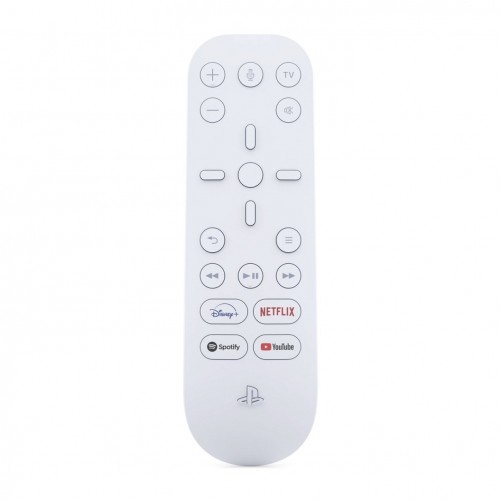 The Sony PlayStation 5 Media Remote lets you conveniently navigate entertainment on your PlayStation5 console with intuitive media and TV controls. It comes with dedicated app buttons. You can very easily launch Disney+, Netflix, Spotify, and YouTube at the push of a button, even when the console is powered off. It comes with built-in play/pause, fast forward, and fast reverse buttons. So you can quickly navigate media. Power on your PS5 console and navigate its menus directly with the remote for ultimate convenience. You can also adjust the volume and power settings of compatible TVs with the built-in IR transmitter. The Sony PlayStation 5 Media Remote comes with no warranty.