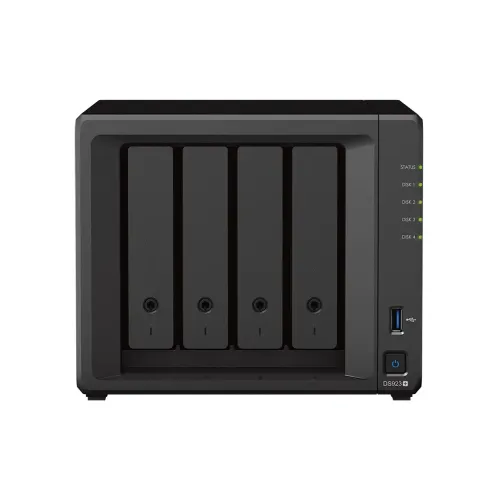The Synology DiskStation DS923+ 4-Bays NAS Enclosure is powered by a 2.0 GHz Intel Celeron J4125 Quad-Core processor, AES-NI hardware encryption engine, and Btrfs file system support. It comes with 4GB DDR4 RAM. The Synology DiskStation DS923+ is capable of sequential read speeds of up to 225.99 MB/s and write speed of up to 225.9 MB/s. It also comes with two USB 3.0/3.1 Gen 1 Type-A ports which allow it to be connected to your Windows or Mac system. It is equipped with an AES-NI hardware encryption engine, it offloads the encryption calculation tasks from the main CPU. It supports RAID 0, 1, 5, 6, 10, Hybrid, Basic, and JBOD. It comes with two USB 3.0 Type-A ports which allow it to be connected to your host system, and network connectivity is achieved via the dual integrated Gigabit Ethernet ports that support link aggregation and failover, allowing your stored data to be shared with users throughout the network.