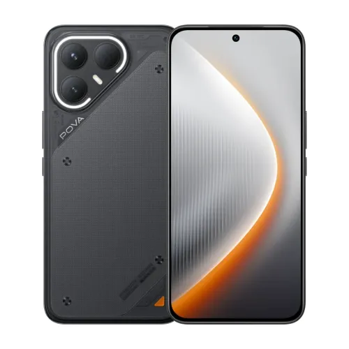 The Tecno Pova 7 Pro 5G is a powerful smartphone. The camera system consists of a 64 MP wide lens with PDAF and a huge 1/1.73" sensor, which is paired with an 8 MP ultrawide lens, assisted by dual-LED flash and capable of shooting 4K and 1080p films. The 13 MP wide front camera takes colorful selfies and offers video recording for crystal-clear calls. Stereo speakers, a 3.5mm headphone connector, and Hi-Res 24-bit/192kHz audio (wired and wireless) improve sound quality. The Tecno Pova 7 Pro 5G supports Wi-Fi 6, Bluetooth, NFC, GPS, GLONASS, GALILEO, BDS, an infrared connector, and USB Type-C 2.0 with OTG support. An under-display optical fingerprint sensor, as well as typical sensors like accelerometer, gyro, proximity, and compass, and the Circle to Search feature, provide security. The Tecno Pova 7 Pro 5G is a comprehensive package that combines durability, style, and cutting-edge technology. It features dual Nano-SIM compatibility, IP64 dust and splash resistance, and a unique LED status indicator on the back.